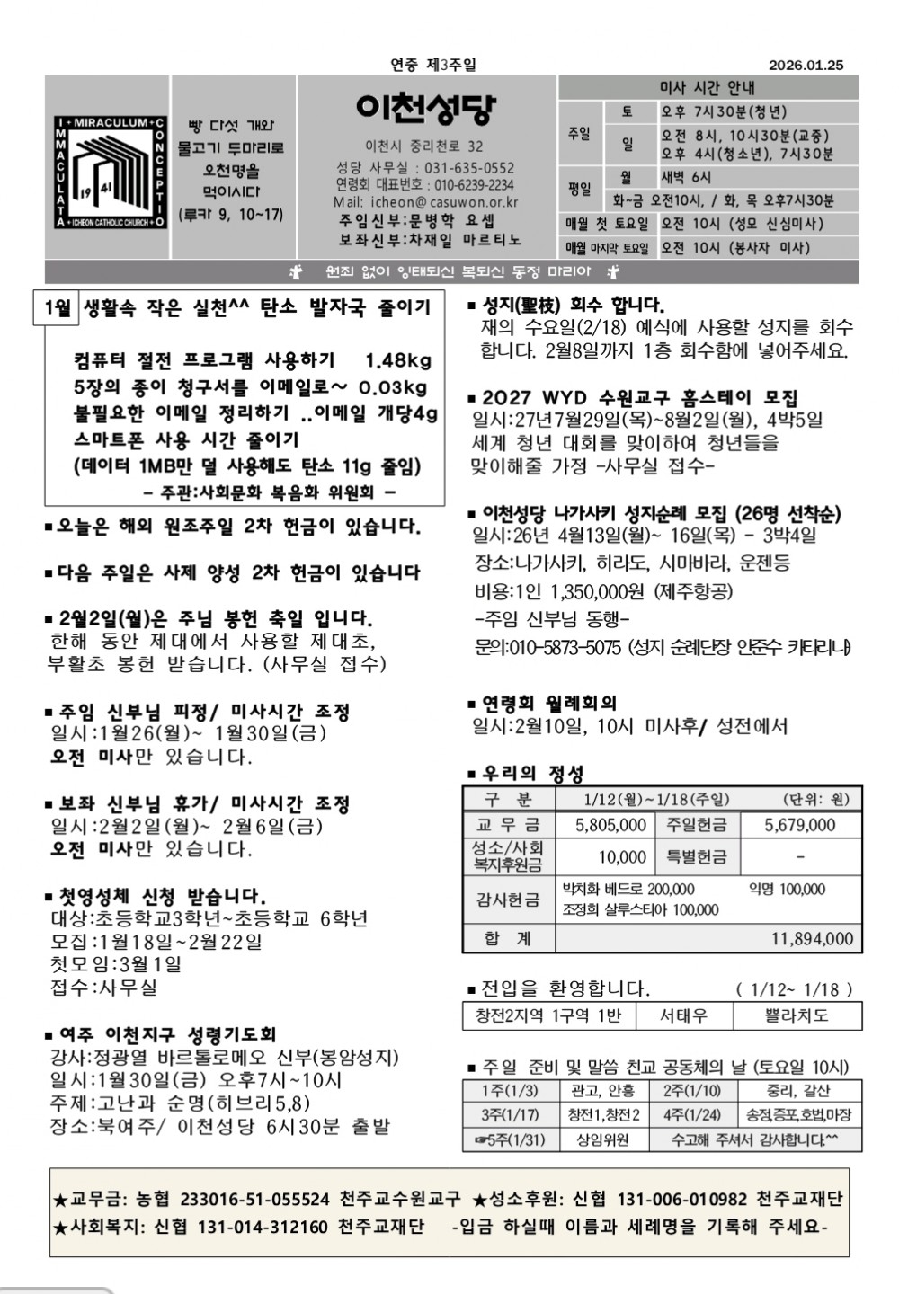 2026년 1월 25일 연중 제3주일(해외 원조 주일)
