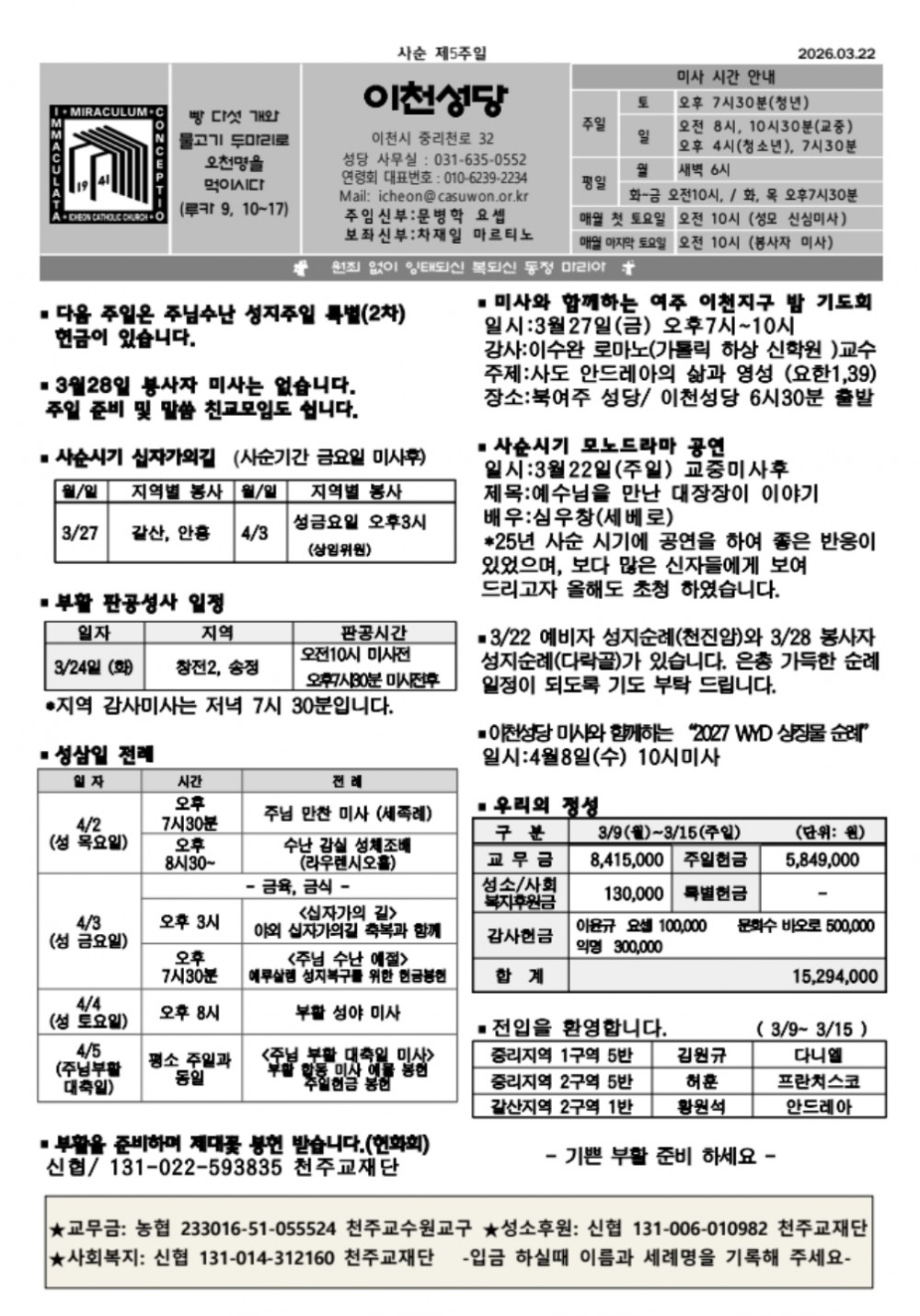 2026년 3월 22일 사순 제 5주일 페이지 정보 작성자 이천성당 댓글 0건 조회Hit 70회 작성일Date 26-03-22 10:27 본문 . 목록 이전글2026년 3월 29일 주님 수난 성지 주일 26.03.26 다음글2026년 3월 15일 사순 제 4주일 26.03.13 댓글목록 댓글목록 등록된 댓글이 없습니다.