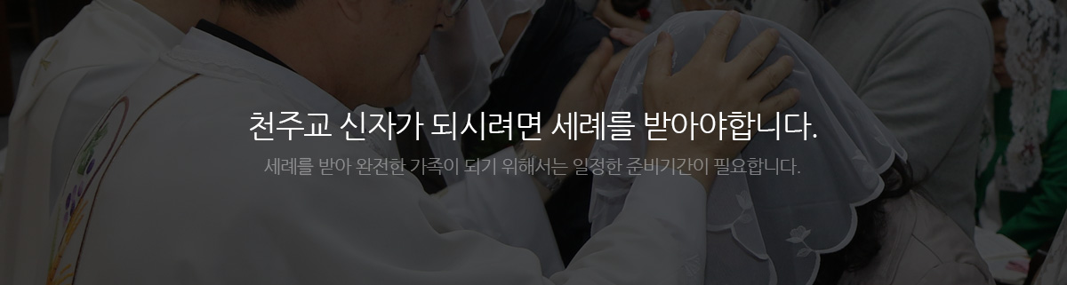 | 예비자 교리ㆍ미사 참례 | 정해진 기간(약 8개월) 동안 매주 1회 신자가 되기 위한 교육인, 예비자 교리 교육과 주일 미사 참례를 해야 합니다. |